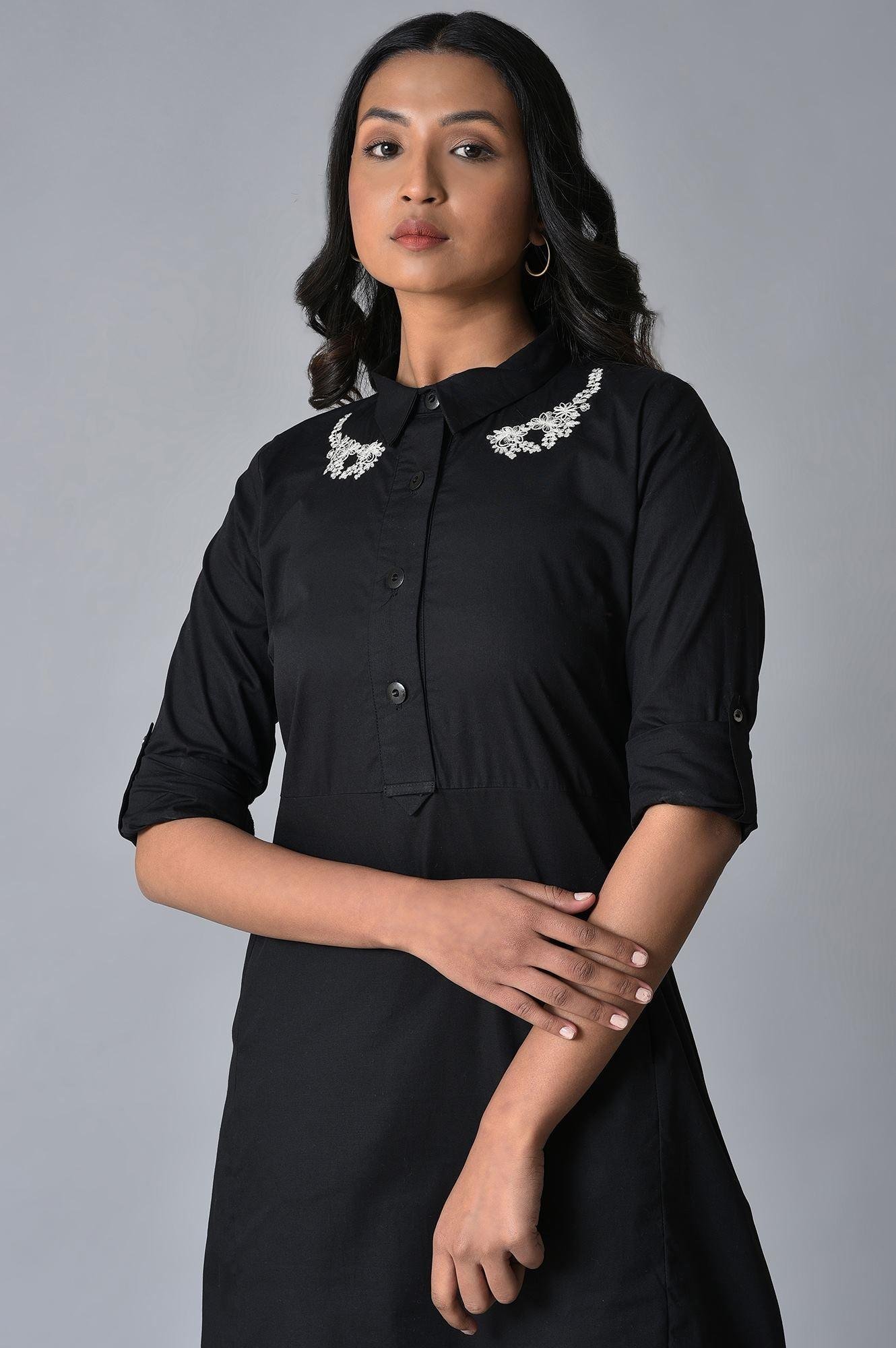 Be the first to review “Black Cotton Embroidered Shirt Dress”