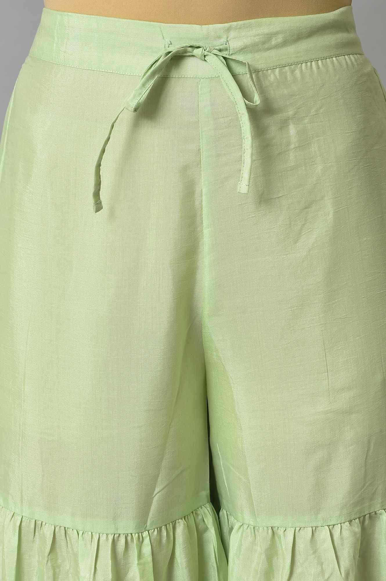 Embrace ethnic elegance with this stunning kurta and sharara set. The ensemble features a straight-cut kurta adorned with an eye-catching geometric print, perfect for making a statement at casual gatherings. Crafted from flowing georgette fabric, this outfit offers both comfort and style. The three-quarter sleeves provide a classic touch, while the round neckline adds a contemporary flair. The green hue of this ensemble is sure to turn heads and complement various skin tones. Meticulously woven using 100% man-made fiber, this ethnic wear promises durability and easy care. Whether you’re attending a family function or a festive celebration, this kurta and sharara set will ensure you look effortlessly chic and culturally refined.