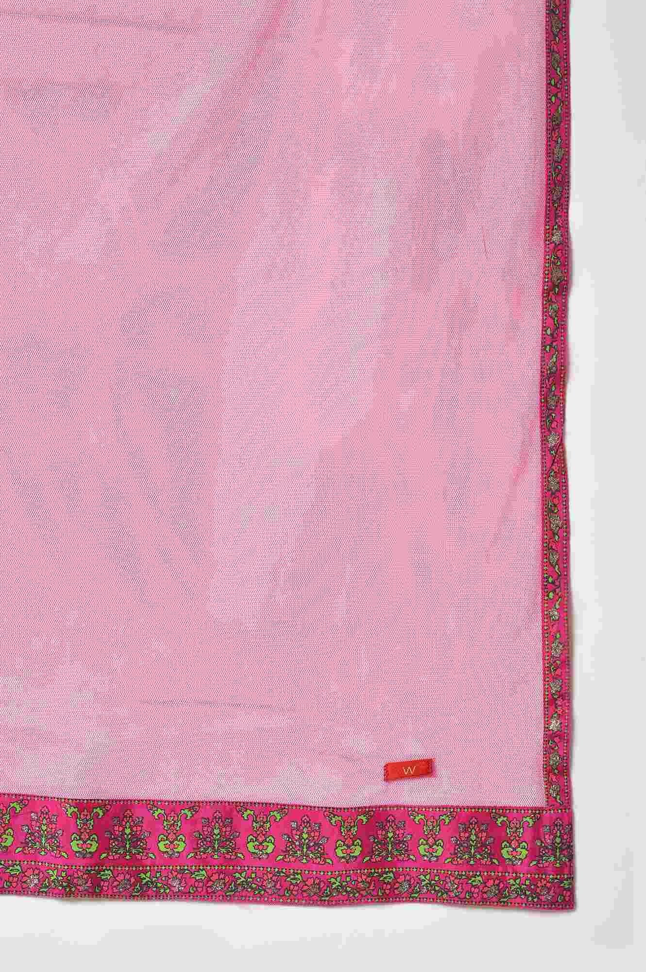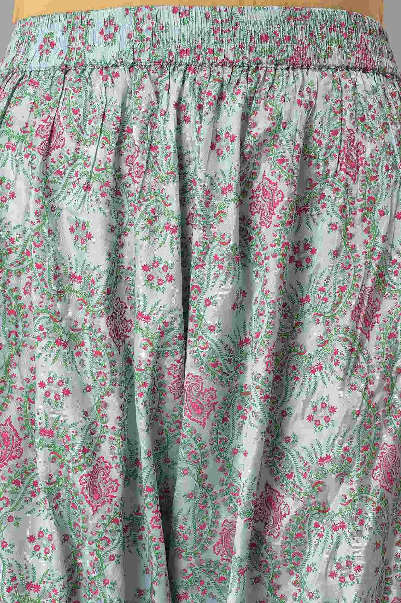 Light Blue Paisley Print High-Low kurta With Draped Pants And Pink Dupatta