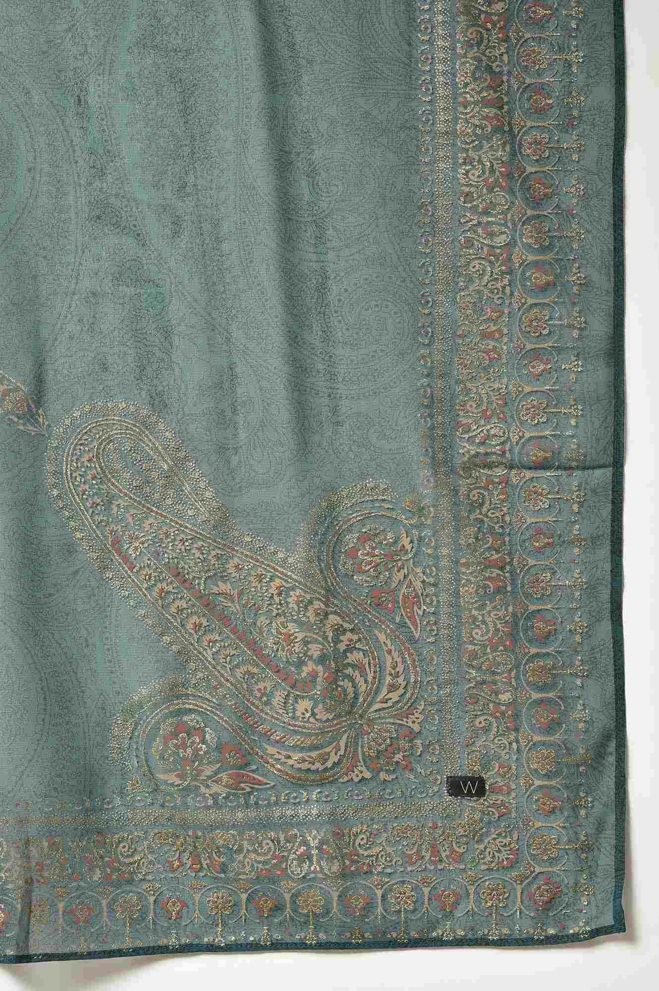 Light Festive Velvet Floral Printed kurta In Straight Silhoutte. It Is Highlighted With Sequins Work And Has Round Neck. The kurta Is Paired With Green Parallel Pants And Printed Georgette Dupatta.