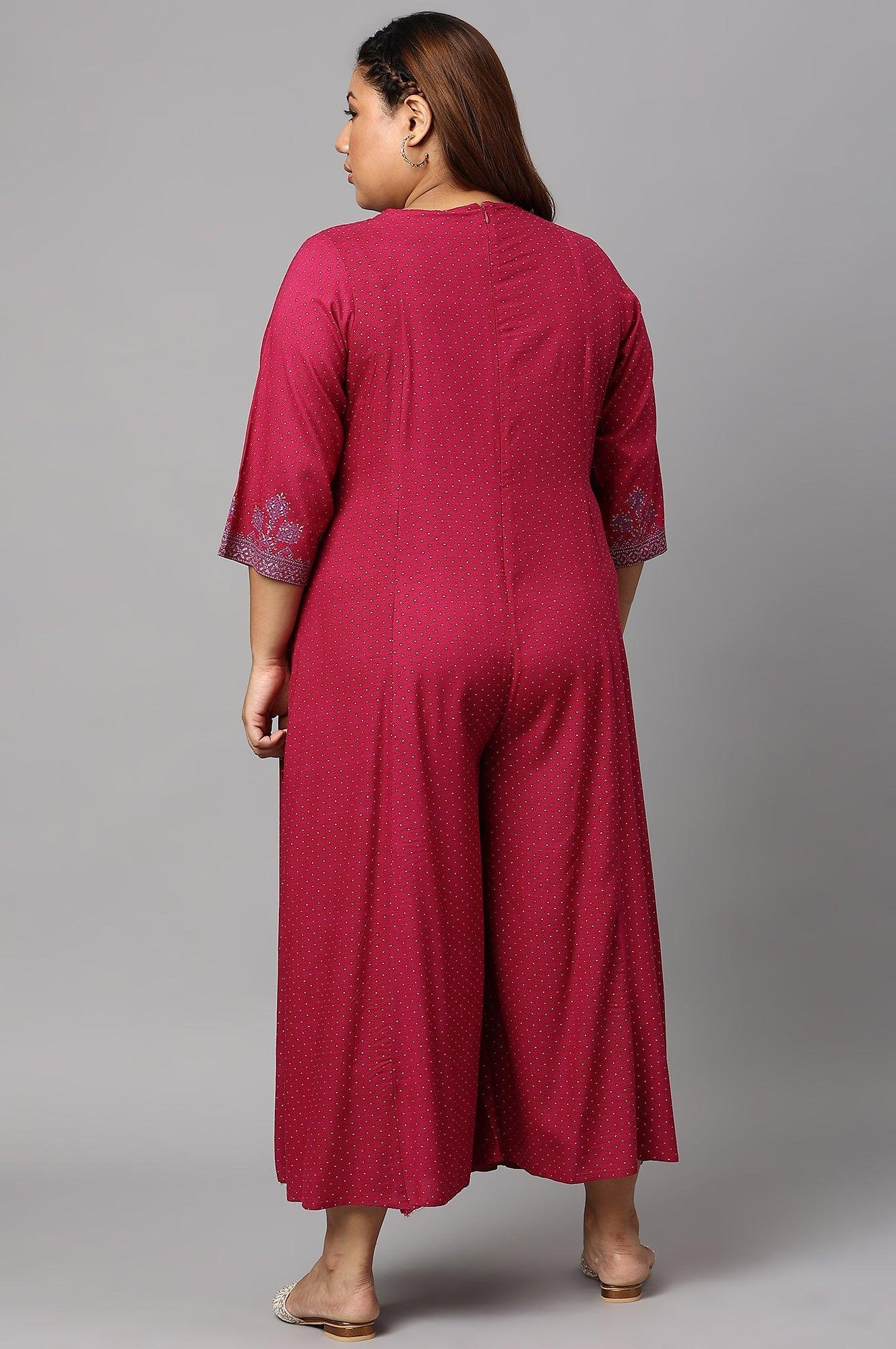 Rasberry Wine Liva Eco Glitter Printed Mock Layered Kimono Jumpsuit In Rayon With Sequin Highlighting On The Neck
