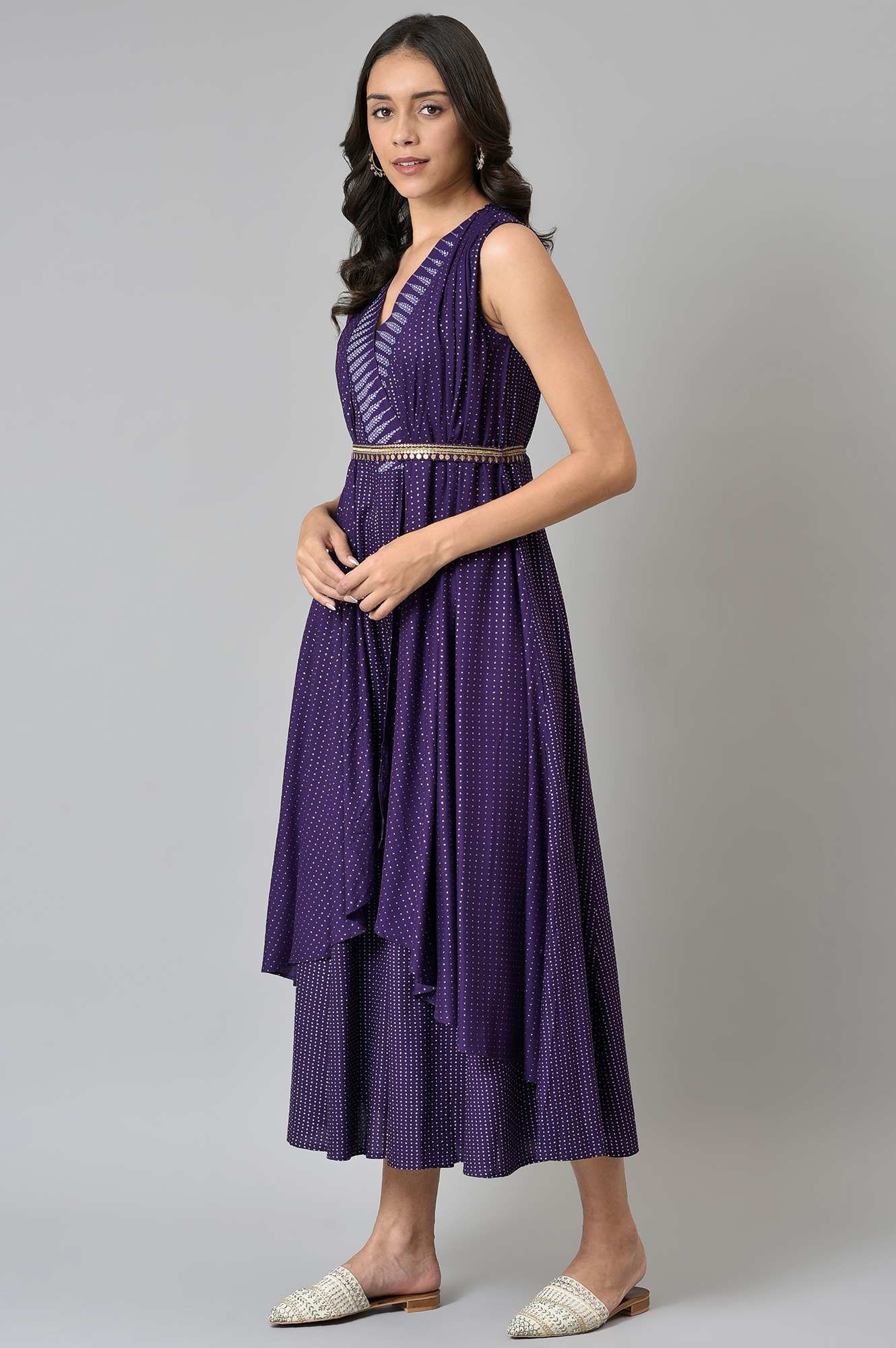 Deep Purple Gillet Jumpsuit With Embellished Belt