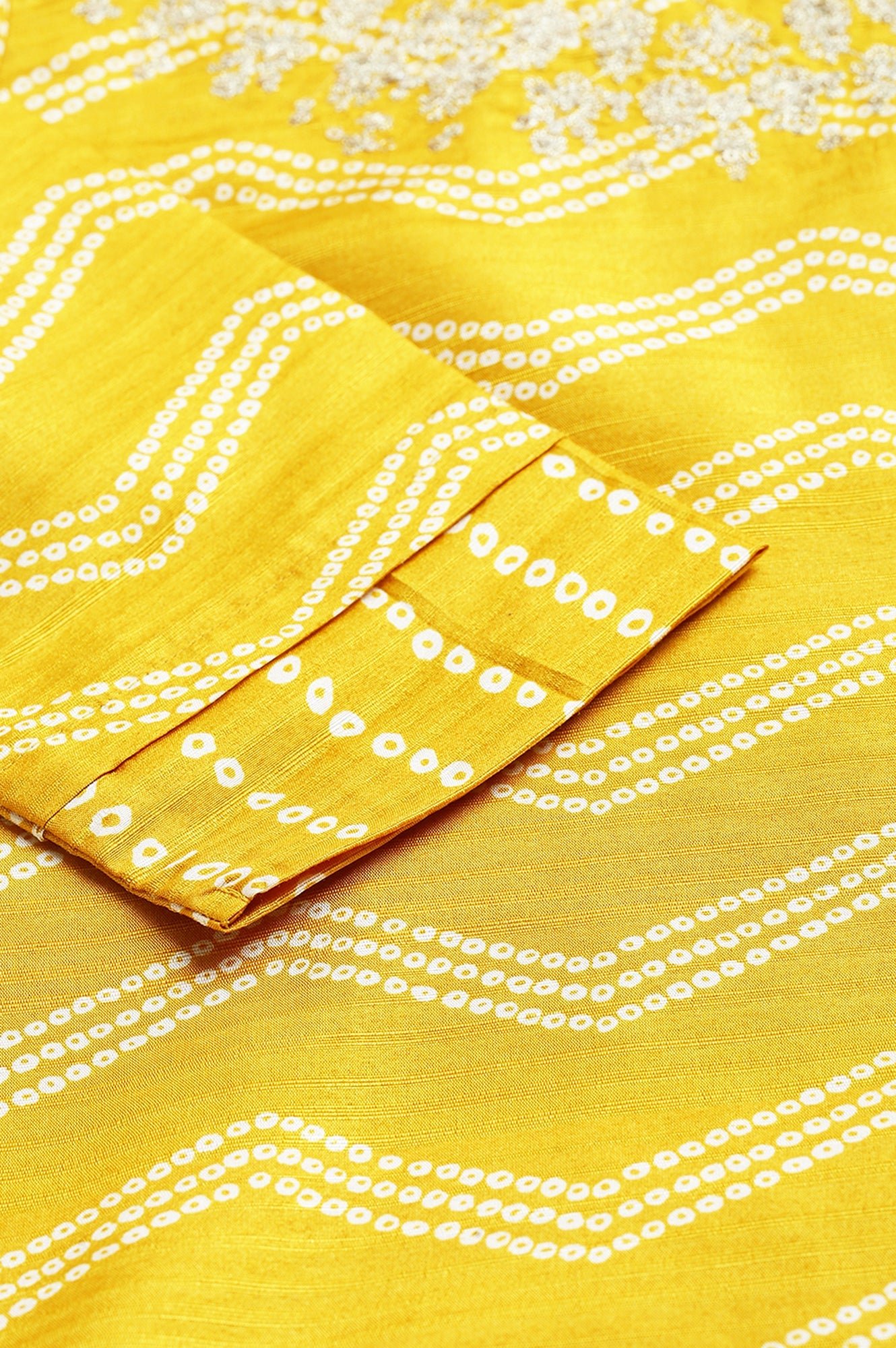 Traditional and vibrant, this yellow bandhani printed women kurta set comes with parallel pants and a dupatta for complete styling. The kurta is adorned with timeless bandhani motifs, making it a festive kurta set for women that blends culture with elegance. Parallel pants ensure ease, while the dupatta completes the ensemble gracefully. Crafted in lightweight fabric, it offers comfort through long celebrations. A bright and cheerful kurta set for women designed to bring traditional richness with modern versatility.